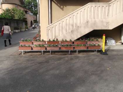 季節が合わり,たくさんの花が枯れだしたので,正門前のプランターを植え替えました。学校が少しきれいになったように感じます。