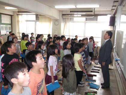 今日は,合唱の練習をしました。歌う前に校長先生に発声の指導をしていただきました。みんな,背筋を伸ばし,息を思い切り吐いていい声を出しました。そのあとの歌声ものびやかなきれいな声でした!