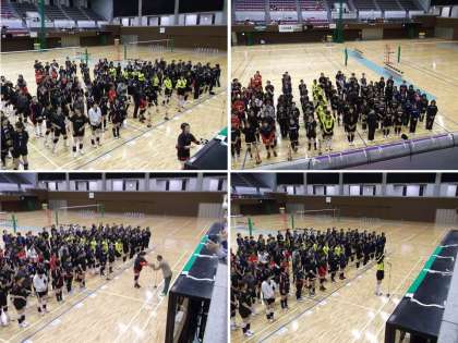 京都市体育館(ハンラリーズアリーナ)で,PTAバレーの『元七親善バレーボール大会』が行われました。午前9時より開会式があり,午前9時30分から第1試合が行われました。