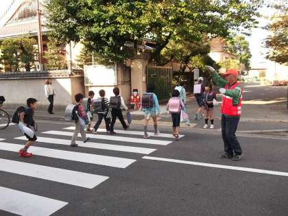 今朝は秋晴れの良い天気の中を子どもたちは,元気よく登校してきました。