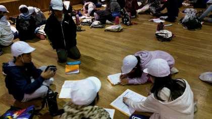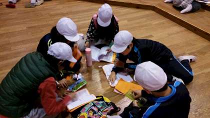『火起しで協力できた!』『野外炊事では昨日よりも早くおいしくできた!』など,今日の目標である【協力】を意識して活動していたようです。