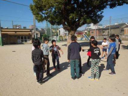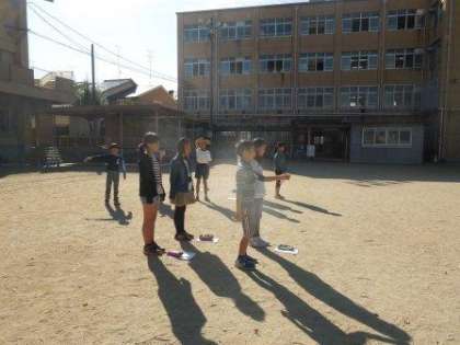 今日は外で声だしをしながら,動き方の練習をしました。