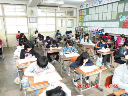 今日でプレジョイントプログラムの4教科(国語・算数・社会・理科)全てが終わりました。テストは問題用紙と解答用紙に分かれており,いつもとちがう雰囲気の中,子どもたちは集中して頑張っていました。