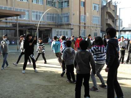縄回しのテンポが良く,みんな,どんどん,どんどん跳んでいきます。