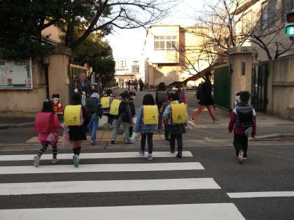 今朝はよく晴れていましたが,とても寒くて少し風が吹くと凍えるような感じでした。登校してくる子どもたちの中には,「手がとっても冷たい。」「耳が凍る。」などと,友だちと話をしながら登校してきました。