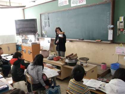 昔のくらしを伝えるいろいろな道具を見て,「子どもたちは見たことがあるのか。」「何に使われたものか。」などを考えて発表しました。