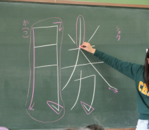 3組では,基本的に毎日2文字ずつ新しい漢字を学習しています。みんなで,とめ・はね・はらい・おれや筆順を確かめながら練習しています。