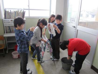 しっかり洗えていない物や絞れていない物を見つけて,洗い直したり,絞り直したり。