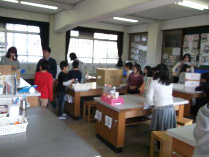 その後,ダンボール空気砲で,さらに大きな空気の力を感じました。
