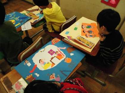 子どもたちはみんな,楽しく想像しながら色彩豊かな作品が仕上がりました。