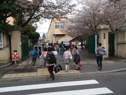 朝から教職員みんなで,掃除をしました。その様子を見ていた子どもたちが,花びらや葉っぱの掃き掃除を手伝ってくれました。
