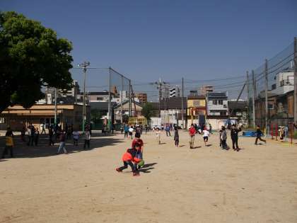 運動場では,たくさんの子どもたちが友だちと楽しそうに遊んでいました。