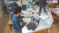 教室の中にも入って,授業の様子を見学してくれる子もいました。