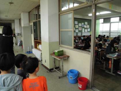 教室の中にも入って,授業の様子を見学してくれる子もいました。