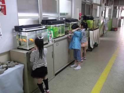 子どもたちは,いつものように元気よく朝のあいさつをして校門をくぐっていきました。しかし,残念なことに昨日の雨の影響で,今日は朝休みに運動場が使えません。子どもたちは,教室で過ごしたり,職員室前の生き物を見に来たりしていました。