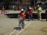 実技試験は,緊張しながらも,一つ一つの注意を意識しながら自転車で走行することができていました。「むずかしかった〜」と言っている子どもが多かったです。この経験から,普段自転車に乗る時には安全に気をつけるように意識できるのではないかと思います。