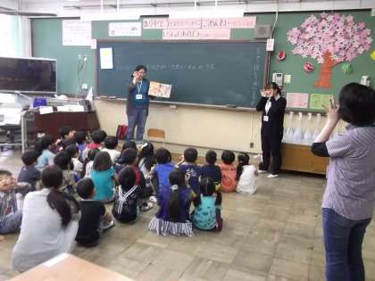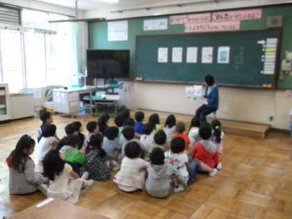 毎週水曜日の朝学習の時間に地域の図書ボランティアの方々に『読み聞かせ』をしていただいていました。