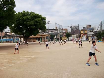運動場で遊んでいる子どもたちは,今日の1・2時間目に行われる運動会の『全校練習』が行われるので,ほとんどの子が体育服を来て,楽しそうに遊んでいました。