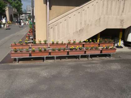 正門においてあるプランターの花を『マリーゴールド』に植え替えました。きれいに咲いてくれるといいなあと思っています。