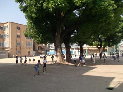 運動場では,強い日差しの中ですが,子どもたちが元気よく友だちと楽しそうに遊んでいました。