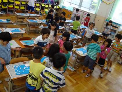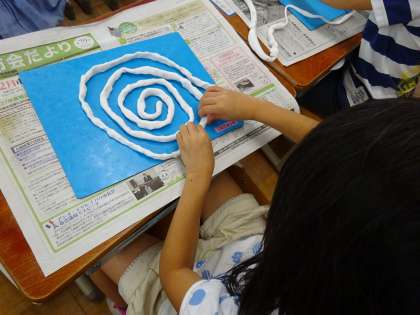 子どもたちは粘土の感触を味わいながら粘土のひもを使っていろいろな形を表すことを楽しみました。