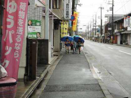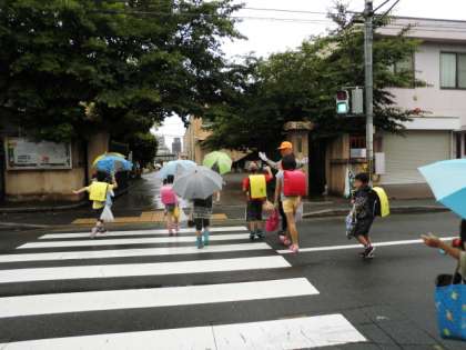 傘をさしながら,荷物をもって登校するのはとても大変です。でも,友だちと出会ったときに,「○○ちゃん,おはよう」と声をかけ合っている様子を見ると,晴れやかな気持ちになります。