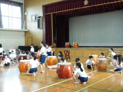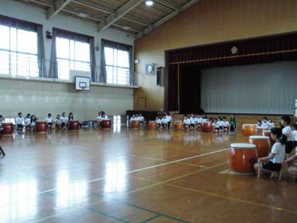 体育館から響いてくる和太鼓の音色は,大変リズミカルでエネルギッシュです。