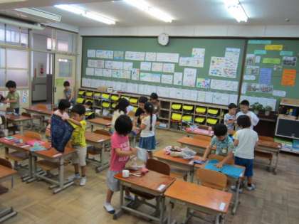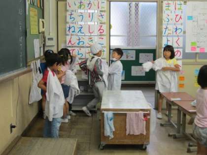 1年生の教室では,給食の準備や配膳,食事にとても時間がかかり,戦場の様でした。