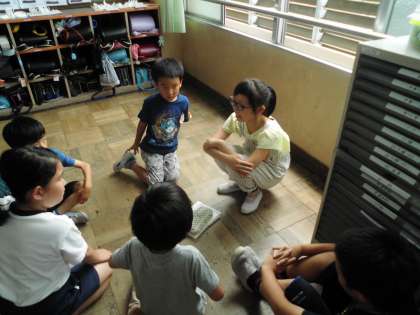 6年生全員がリーダーとなり,遊びを中心に仲良く遊んだりお話ししたりします。