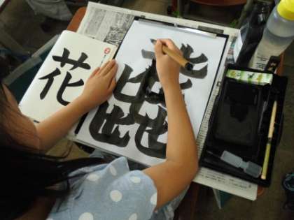 書写の学習を行いました。今日は「花」という漢字を書きました。「はらい」や「曲げ」「はね」があるので難しかったのですが,集中して取り組んでいました。練習用紙に納得のいくまで練習をし,本番に臨みました。力作がそろったと思います。