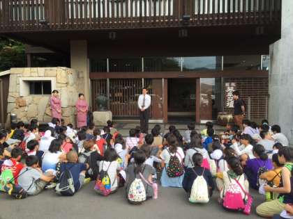 楽しい一晩を過ごした宿舎に「ありがとうございました」