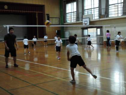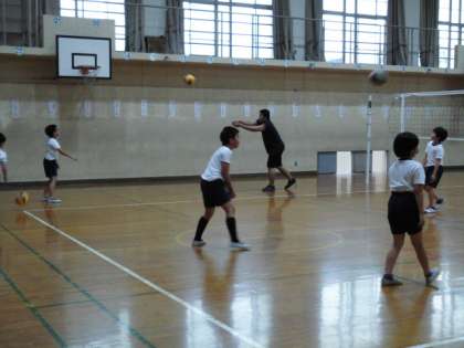 始まったばかりのバレーボールの練習です。まだまだ,パスがうまくつながらないので,今の目標は円陣パスで20回続けることです。