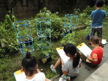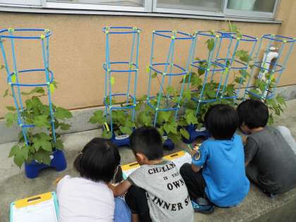 つるが伸びて子どもたちはとてもうれしそうです。