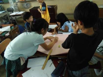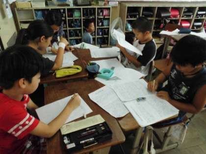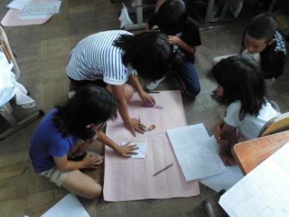 班でだれがどの記事を書くか相談し,役割分担をして1枚の新聞に仕上げます。子どもたちは自分が担当する記事を見学メモを見ながら一生懸命に書いていました。