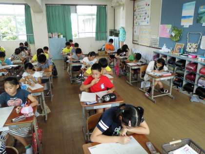 子どもたちは夏休みの間に,たくさんの練習していたので,終わったばかりですが,結果がとても気になっているようです。「自信ある!」と笑顔の子や,「答えが書けなかった〜」と頭を抱えている子と様々でした。