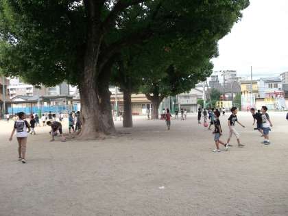運動場では,この蒸し暑い中でもたくさんの子どもたちが友だちと楽しそうに遊んでいました。