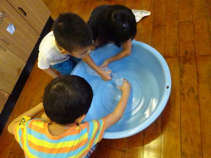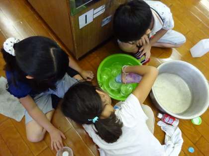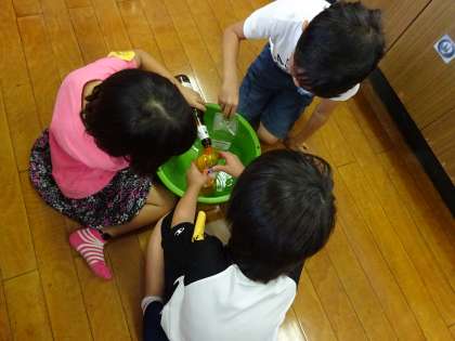 子どもたちは,それぞれ自分の持ってきた容器を使って,楽しく学習ができたようです。ご家庭で学習に必要なものをご準備いただき,ありがとうございました。