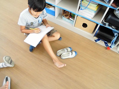 はじめて自分の足を絵にあらわす子もいて,みんなとても楽しそうに集中していました。