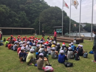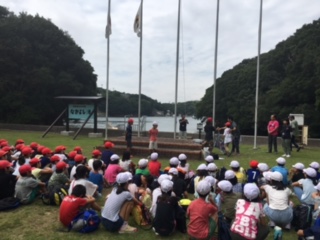 なかよし港での,入所式です。少し薄日がさしているようです。