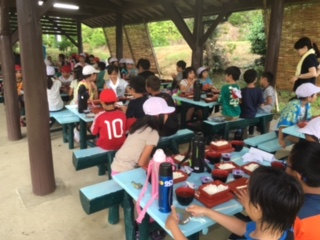 このあと,みさきの家での最大の活動「キャンプファイアー」が待っています。おなかがすかないように,たくさん食べておいてください。
