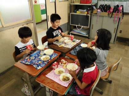 3時間めになると,お腹がすいてきたな。と,給食を楽しみにしています。