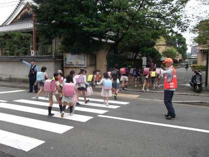 今日は,『秋の交通安全運動』で警察の方が正門に立ってくださり子どもたちの安全を見守ってくださいました。
