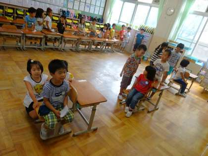 今日は七条小まつりの準備として,お店側とお客側に分かれてリハーサルを行いました。