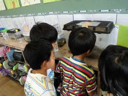 生き物の世話と観察を続ける中で,小さな命に対しての優しさも育ってきたことが感じられます。