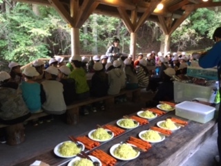 3 火が消えたら,食べ時です。パンがあたたまっておいしいです。