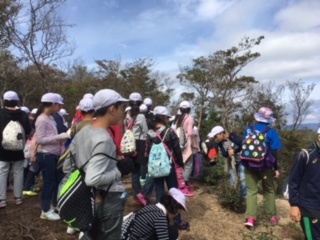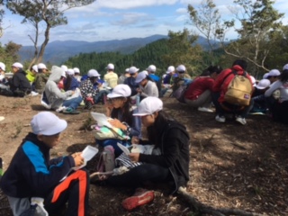 雲取山山頂に到着しました。とっても見晴がいいです。頑張って登山したご褒美ですね。みんなで食べるお弁当は本当においしいですね。