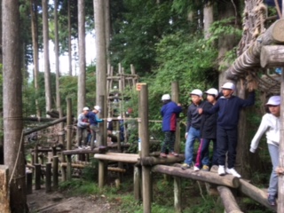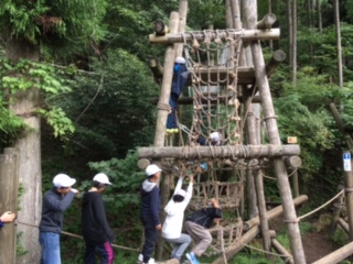 午前中は,冒険の森でフィールドアスレチックを楽しんでいます。