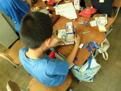 今日の学習のめあて「材料の組み合わせ方を工夫して作ろう」を意識して取り組んでいます。