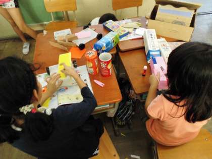 こちらでは,モールと空き箱を組み合わせたり,折り紙と空き箱を組み合わせたりしています。