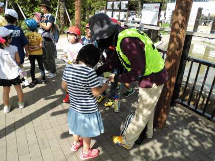 ヤギにエサをやる体験をしたり,班ごとにウォークラリーをしたりして,楽しみました。